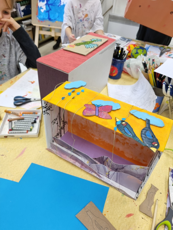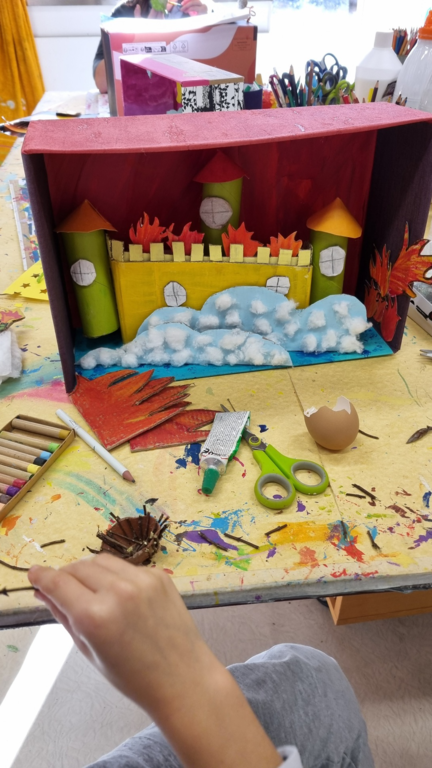 Le premier projet de cette rentrée s'intitulera "boites à rèves". Un projet qui encourage l'imagination et la créativité, pour inventer ses propres histoires et plonger dans un univers magique. D'après leurs dessins, je les ai guidés à la réalisation en volume.